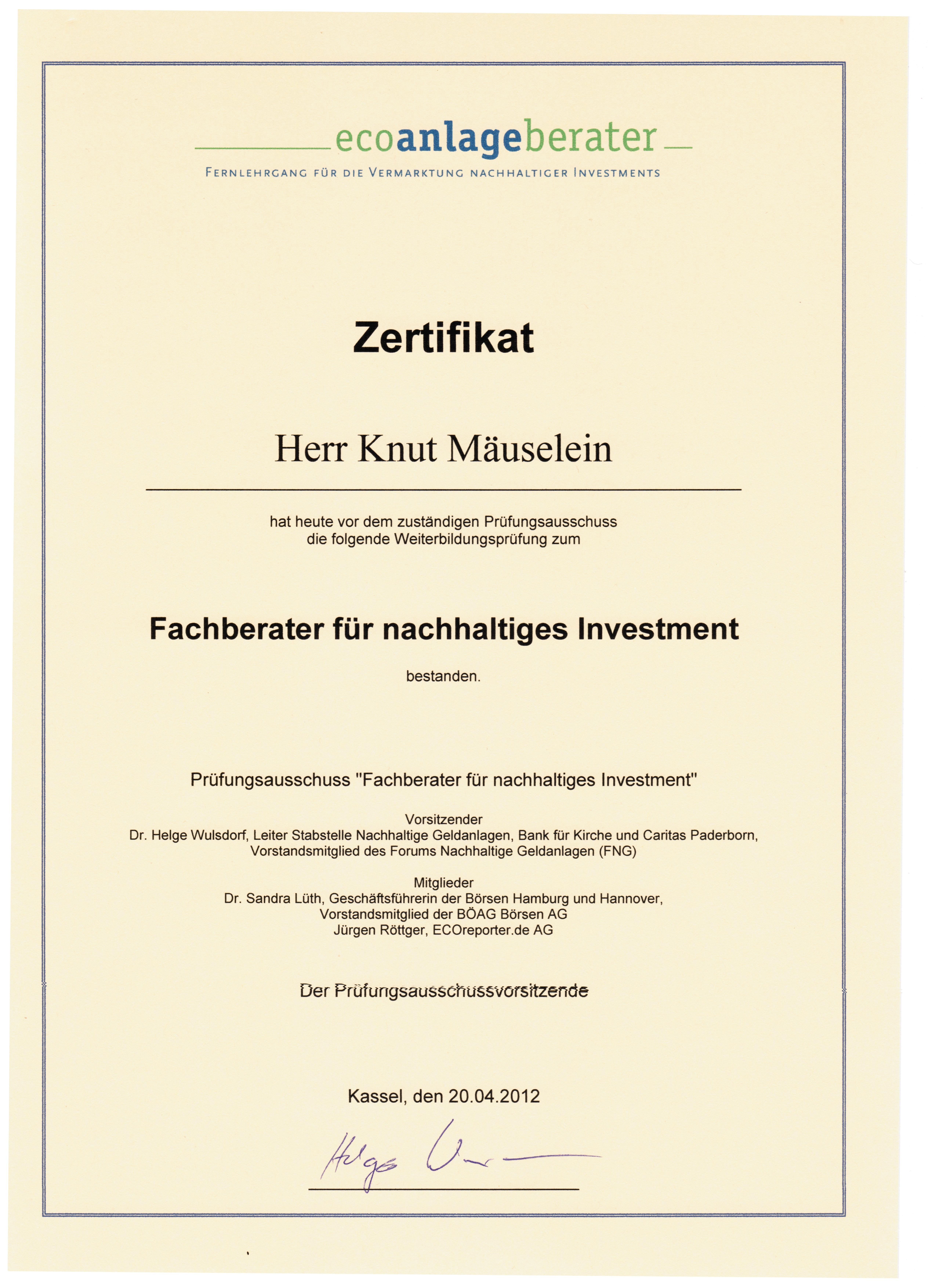 Ab sofort stehen wir Ihnen auch zu dem Thema nachhaltige Kapitalanlagen zur Verfügung.